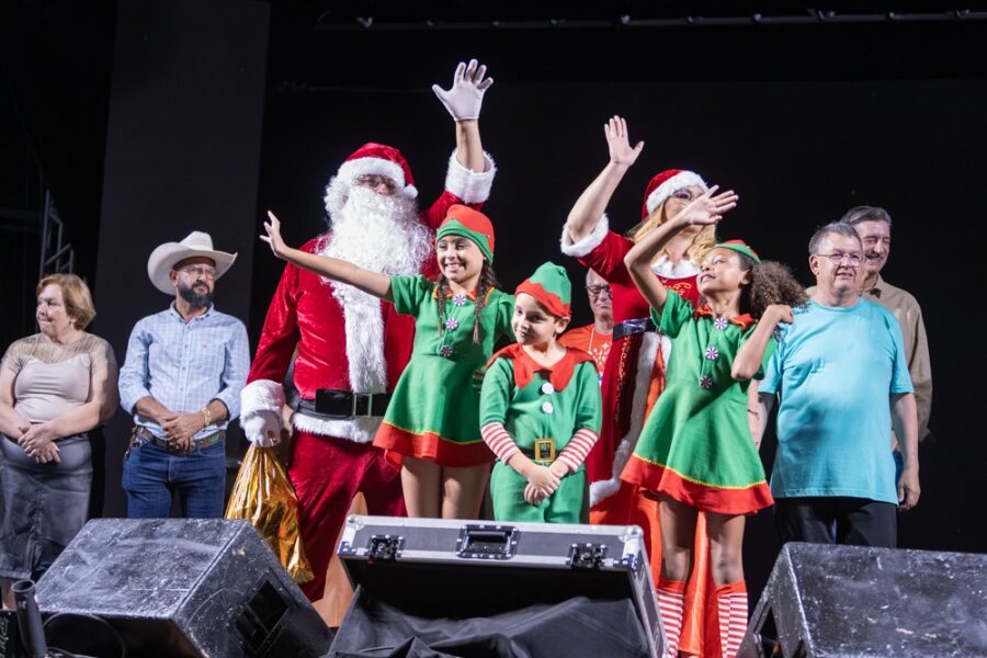 A chegada da Família Noel foi um dos momentos mais celebrados da noite. Crianças e adultos acompanharam com alegria enquanto o bom velhinho e sua família fizeram uma entrada triunfal, marcando oficialmente o início da temporada natalina no município. Sorrisos, aplausos e olhares encantados tomaram conta do ambiente, reforçando o espírito de união e esperança que o Natal representa.