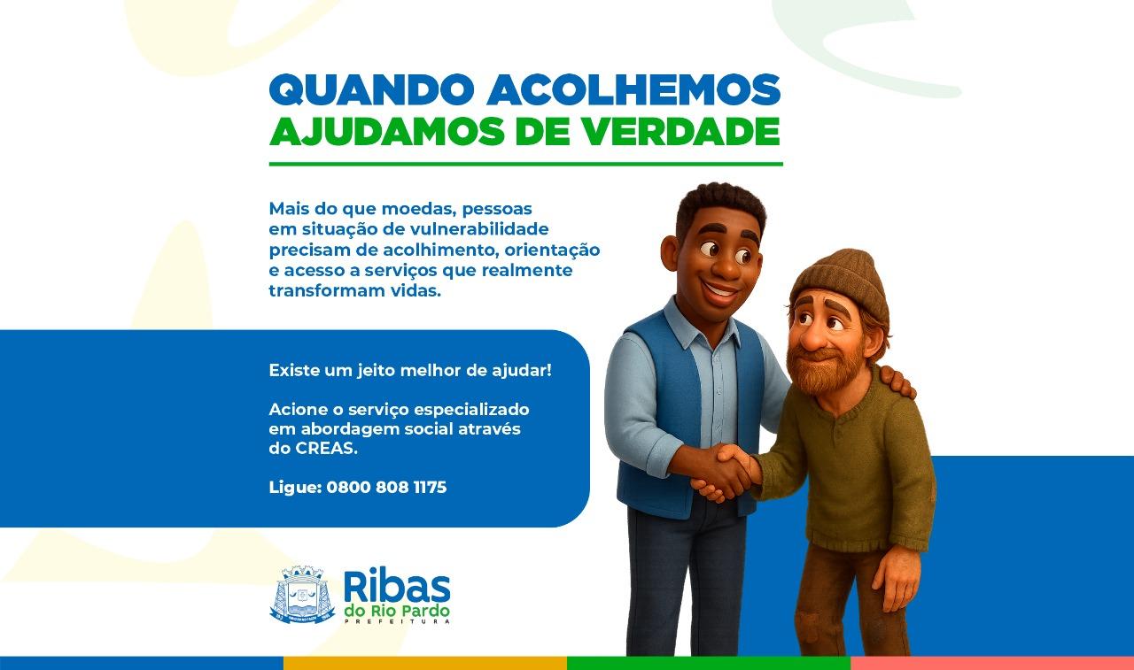 A Prefeitura de Ribas do Rio Pardo, por meio da Secretaria Municipal de Assistência Social, reforça à população que a melhor forma de ajudar pessoas em situação de rua ou vulnerabilidade social é acionando o serviço especializado de abordagem social.