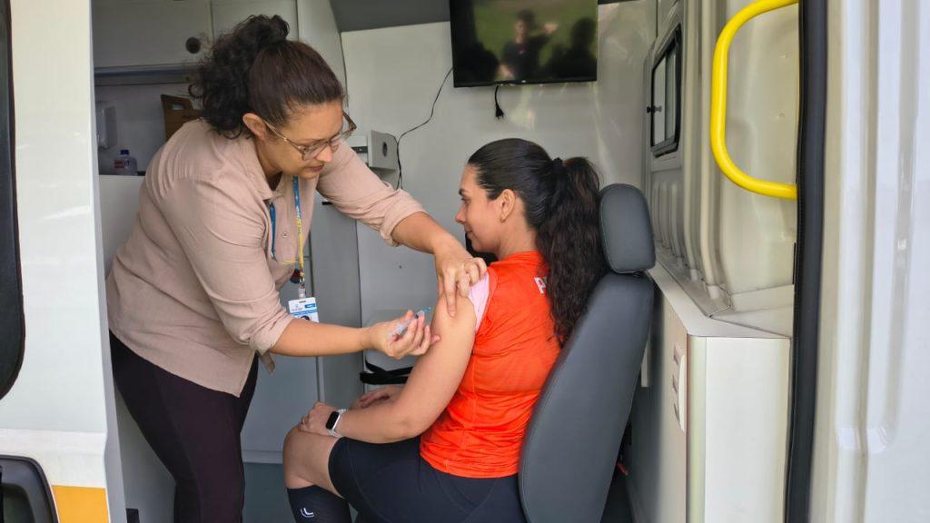Entre as participantes, Bruna Morais, de 36 anos, foi a primeira pessoa a se vacinar durante o evento. Para ela, a presença dos serviços de saúde no local facilitou o acesso ao atendimento. “Quando cheguei e vi que, além da corrida, também tinha serviços de saúde, achei muito importante. É uma forma de valorização e de humanização do cuidado. No meu caso, só faltava uma vacina. Só uma, graças a Deus”.