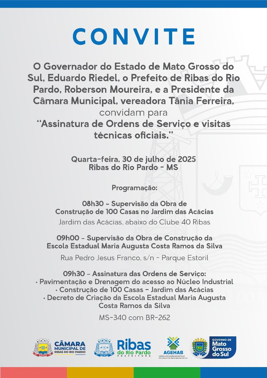 A assinatura da ordem de serviço simboliza, mais uma vez, a união de esforços entre Prefeitura e Governo do Estado para viabilizar projetos de impacto social e econômico. “Investir em infraestrutura é investir no futuro de Ribas do Rio Pardo. Essa é uma prioridade do nosso mandato: trabalhar por uma cidade preparada para crescer de forma planejada, gerando desenvolvimento e qualidade de vida”, resume Roberson Moureira.