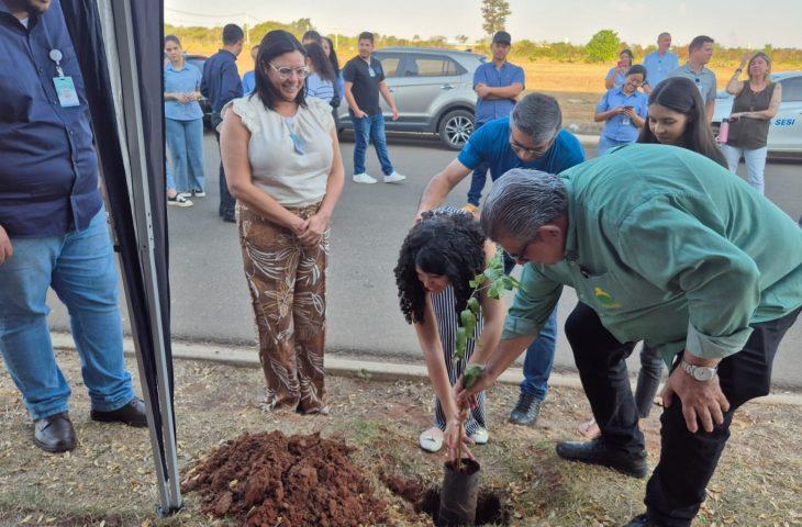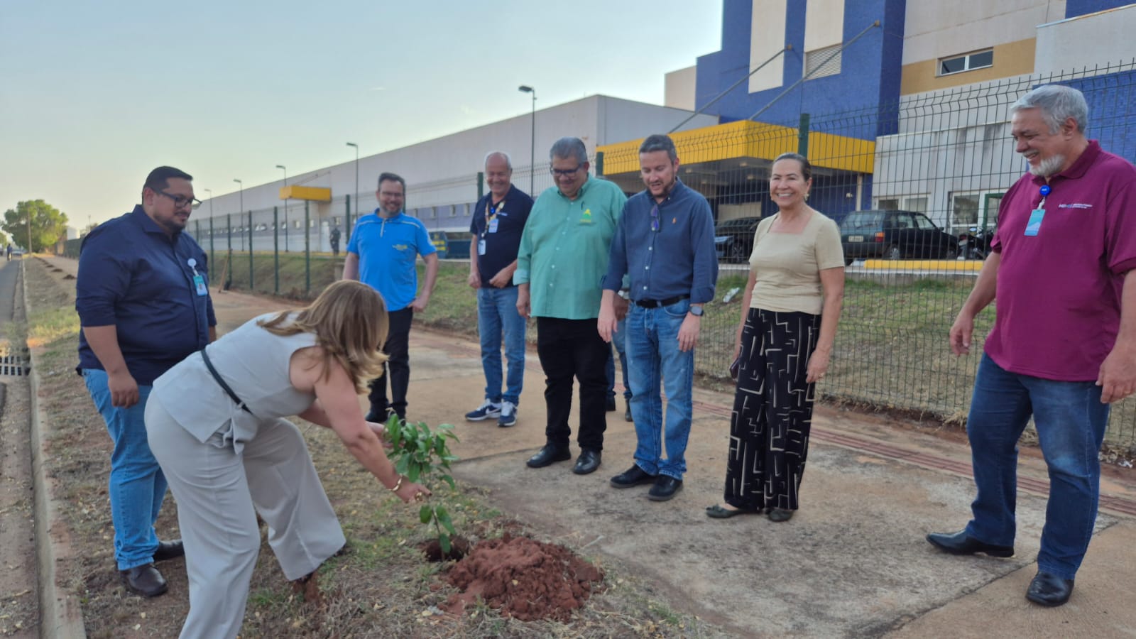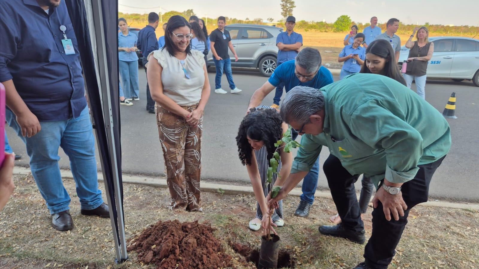 Durante a programação, representantes de cada instituição ao lado da equipe do hospital participaram do plantio de mudas da árvore Oiti na lateral da unidade, simbolizando o início de uma jornada coletiva em defesa da natureza.