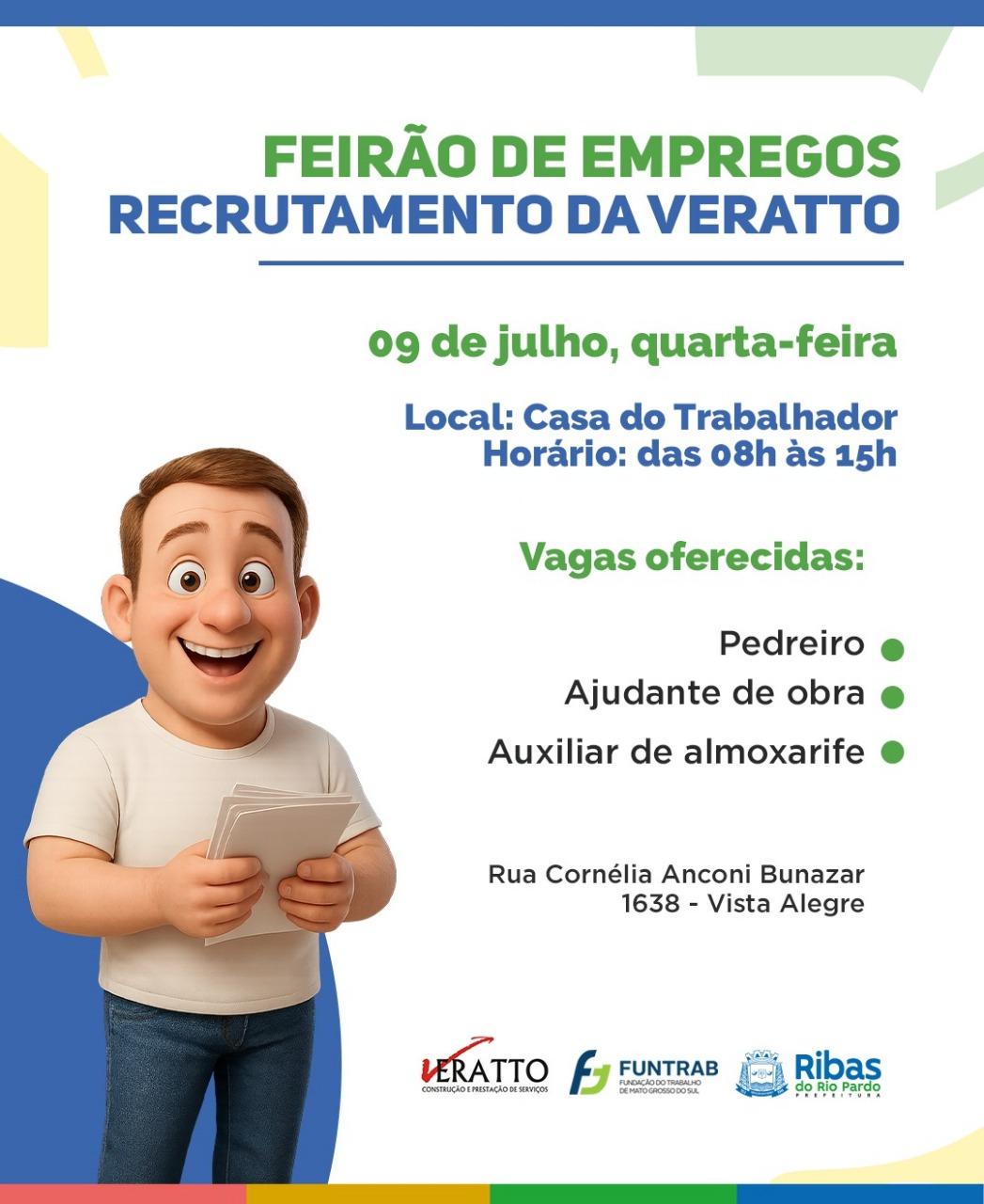 A Prefeitura de Ribas do Rio Pardo, por meio da Secretaria Municipal de Empreendedorismo, realiza durante todo o mês de julho um calendário especial de Feirão de Empregos na Casa do Trabalhador. Todas as terças-feiras, das 08h às 15h, os trabalhadores poderão participar de ações de recrutamento direto com empresas que estão contratando.