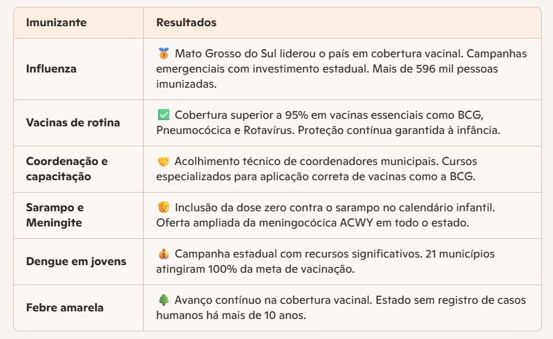 Além da liderança geral, MS vem apresentando resultados expressivos em diversas frentes. Em maio deste ano, o estado liderou a vacinação contra Influenza, com mais de 596 mil pessoas imunizadas. Na ocasião, considerando as gestantes, crianças e idosos, que integram o grupo prioritário, Mato Grosso do Sul obteve o primeiro lugar com 38,93% de imunização.