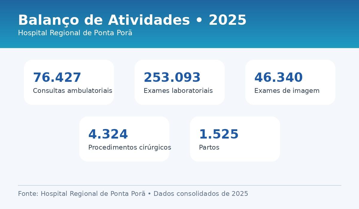 O HRPP (Hospital Regional de Ponta Porã) registrou cerca de 140 mil atendimentos em 2025. Referência para a região sul de Mato Grosso do Sul, a unidade apresentou, no período, avanços técnicos, ações de humanização, iniciativas de sustentabilidade e reconhecimento institucional.