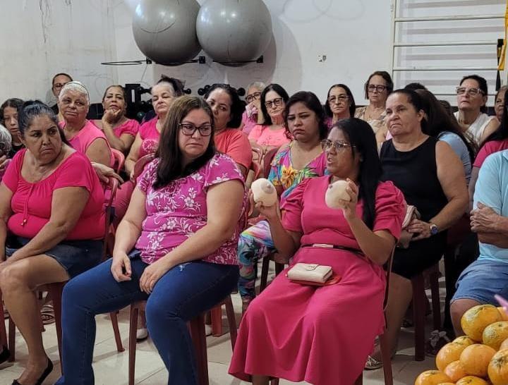 Na quarta-feira, 15 de outubro, as usuárias da Academia da Saúde participaram de uma palestra sobre as causas e a prevenção do câncer de mama e do colo do útero, ministrada pela enfermeira Josi de Paula. Durante o encontro, foram abordados temas como a importância do diagnóstico precoce, a realização de exames preventivos, o autoexame e a adoção de hábitos de vida saudáveis.