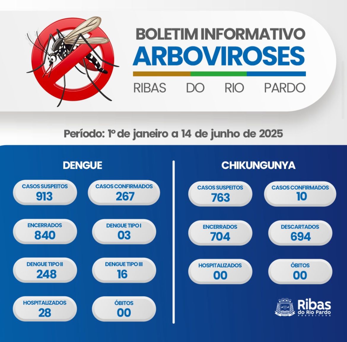 A Prefeitura de Ribas do Rio Pardo, por meio da Secretaria Municipal de Saúde, divulgou recentemente um boletim informativo com dados atualizados sobre as arboviroses no município, abrangendo os casos de dengue e Chikungunya entre o período de 1º de janeiro e 14 de junho de 2025. O boletim traz informações importantes para a população, como o número de casos suspeitos e confirmados, hospitalizações e óbitos, além dos tipos de vírus identificados.