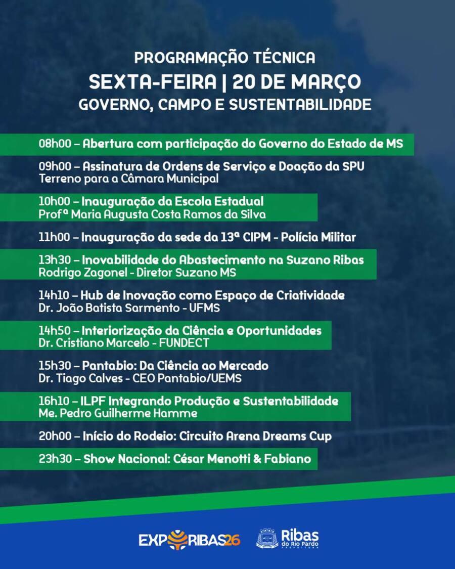 Com uma programação diversificada que une desenvolvimento, conhecimento e celebração, a ExpoRibas 2026 se consolida como um marco para o presente e o futuro de Ribas do Rio Pardo, uma cidade que cresce, avança e se prepara para novas oportunidades.
