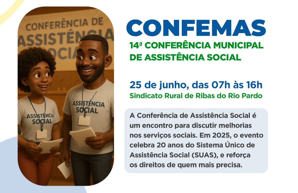 A Prefeitura de Ribas do Rio Pardo, por meio da Secretaria Municipal de Assistência Social, promove no dia 25 de junho a 14ª edição da Conferência Municipal de Assistência Social.